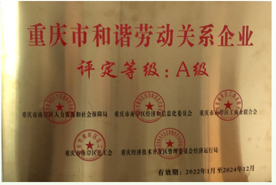 近日,重慶創(chuàng)迪科技榮獲由重慶市人力資源和社會保障局、重慶市南岸區(qū)經(jīng)濟(jì)和信息化委員會、重慶市南岸區(qū)工商業(yè)聯(lián)合會、重慶市南岸區(qū)總工會、重慶經(jīng)濟(jì)技術(shù)開發(fā)區(qū)管理委員會經(jīng)濟(jì)運(yùn)行局共同頒發(fā)的2022年度“重慶市和諧勞動關(guān)系企業(yè)A級”稱號。