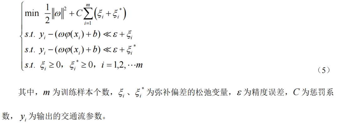 為非線性核函數(shù),b為偏差項,f(x)為交通流的預測值。轉換SVR模型為: