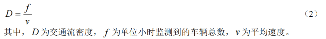 其中,D為交通流密度,f為單位小時監(jiān)測到的車輛總數(shù),ν為平均速度。