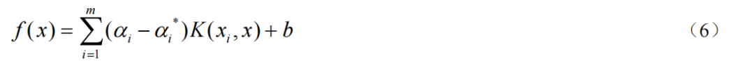 其中,K(xi,x)是核函數(shù),輔助完成數(shù)據完成高維和線性轉換,αi、αi*為為非負的拉格朗日乘子。